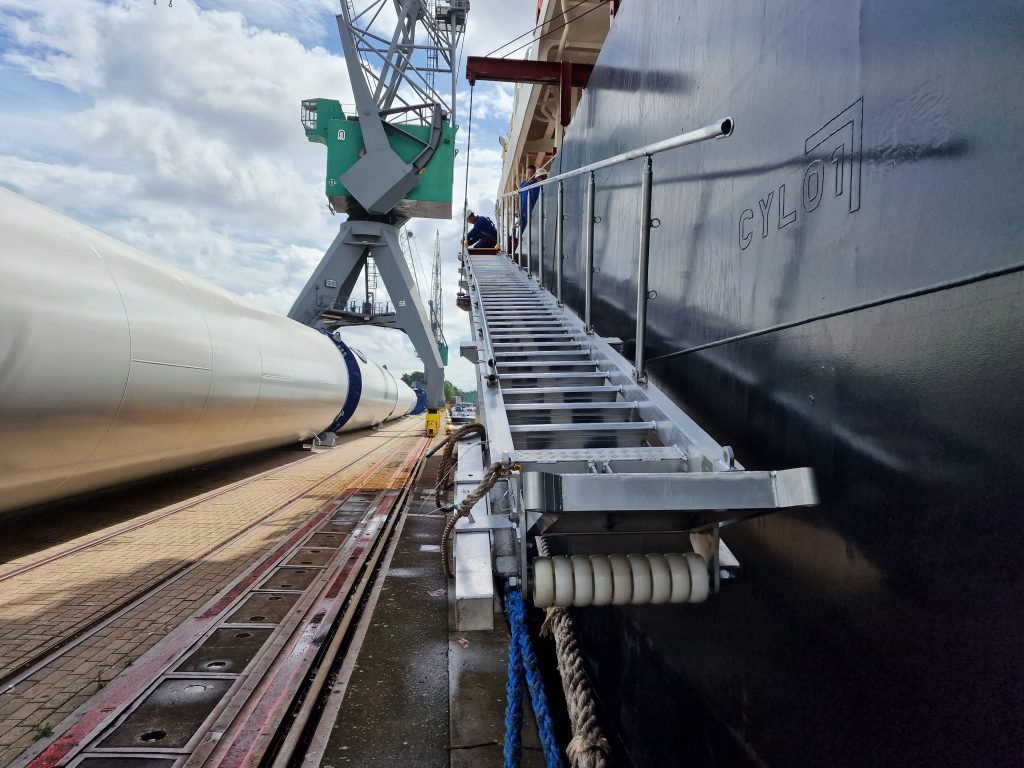 Opvouwbare buitentrap voor toegang vanaf de wal of vanaf de bijboot langszij.