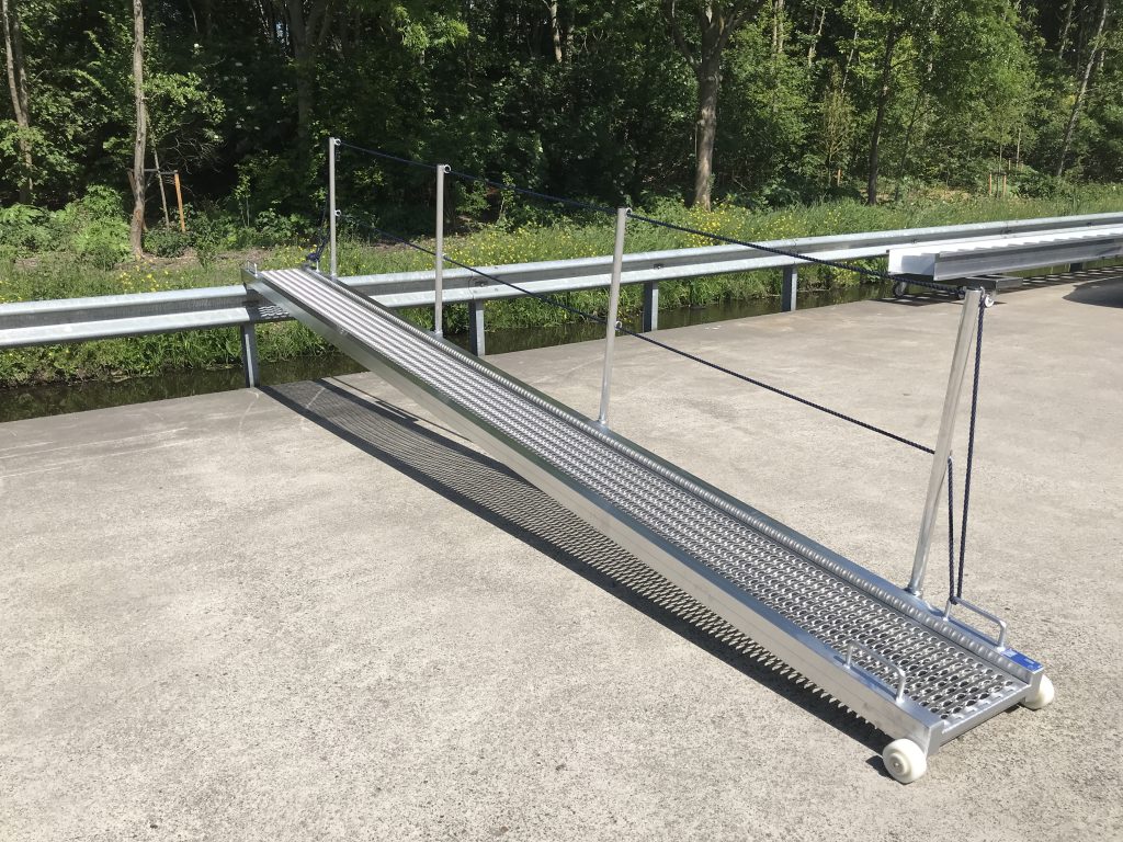 Op basis van de huidige norm NEN 526 loopplanken hebben wij tevens een hoogwaardige en lichtgewicht oprijplaat voor de binnenvaart ontwikkeld. Dit product is altijd op voorraad en snel leverbaar.